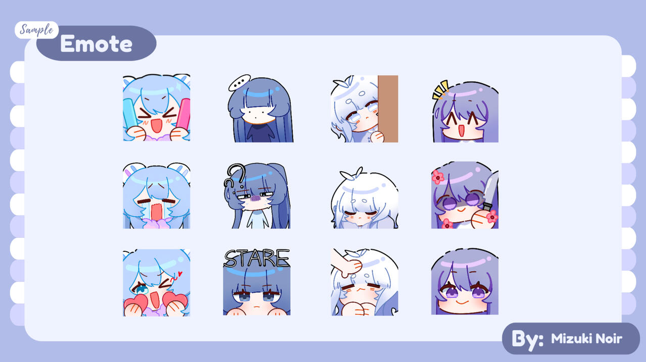 • Turn around time depends on how much emotes ur commissioning (It might also take a lot longer due to time, order of commission, schoolworks, or family problems but once done ill send it right away!)